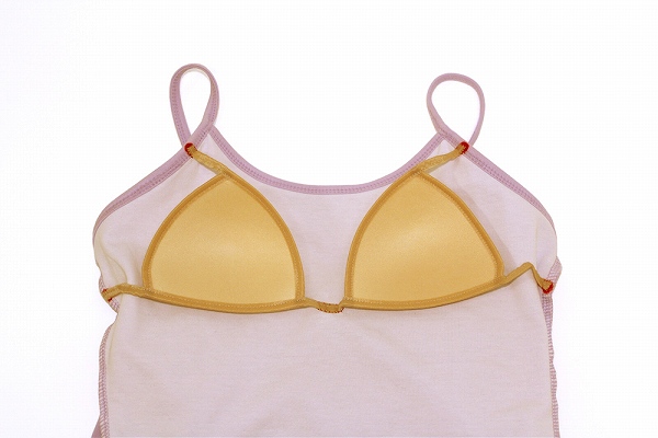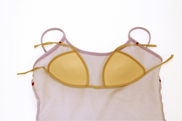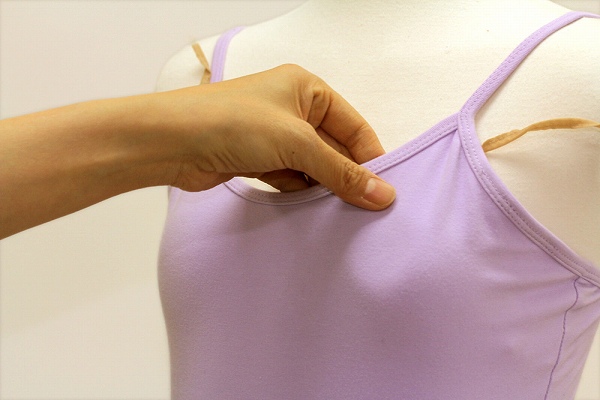 2.レオタードを脱ぎ、裏返してバストパッドを仮置きします。