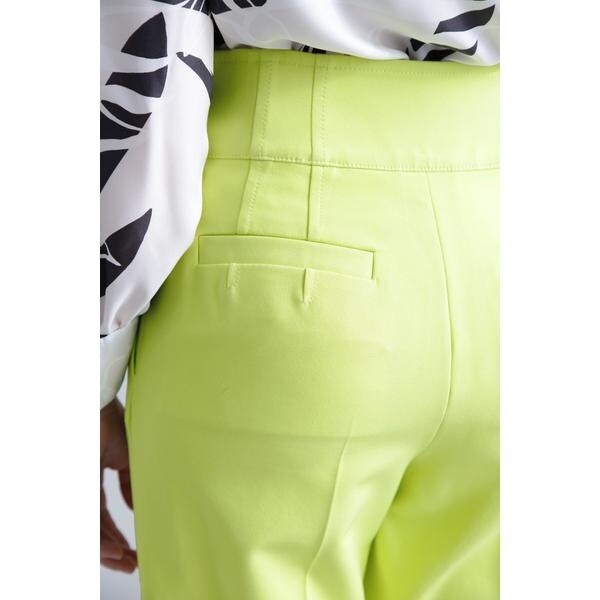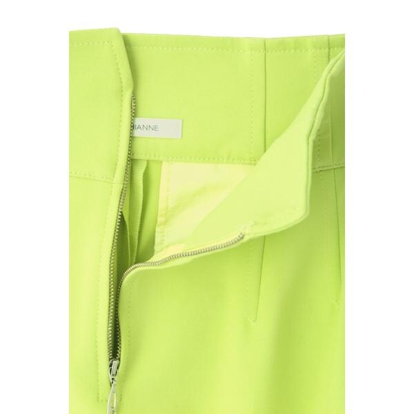 ハイウエストからヒップにかけてダーツを施し、腰回りを沿わせすっきりとしたラインを作り、裾に向かって程よくフィットした美シルエットのテーパードパンツ。ウエストVのカッティングがトップスINのスタイリングをシャープに演出し、フロントジップディティールがスタイリングを引き締めます。