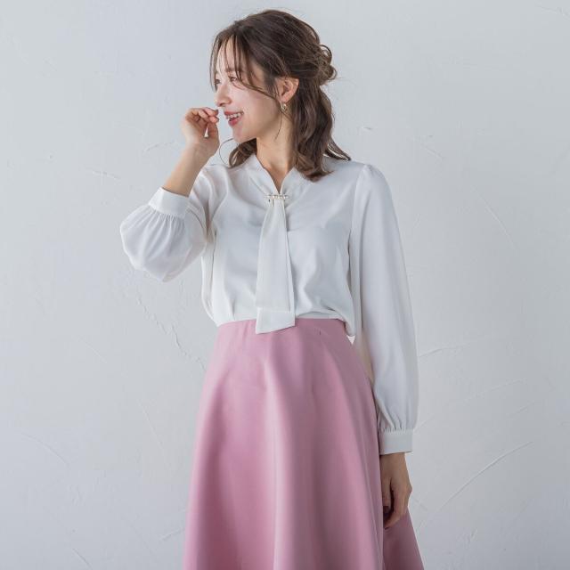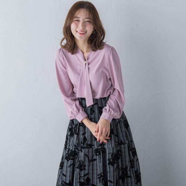 クイーンズコート(QUEENS COURT)/パール付きボウタイブラウス≪洗濯機で洗える≫