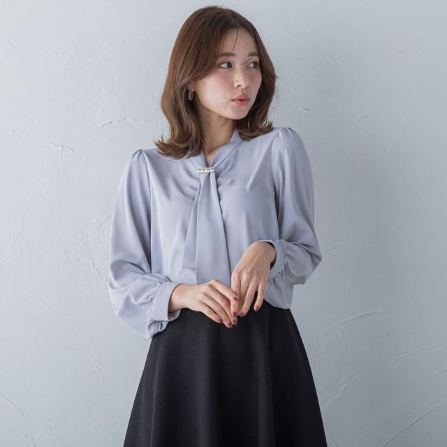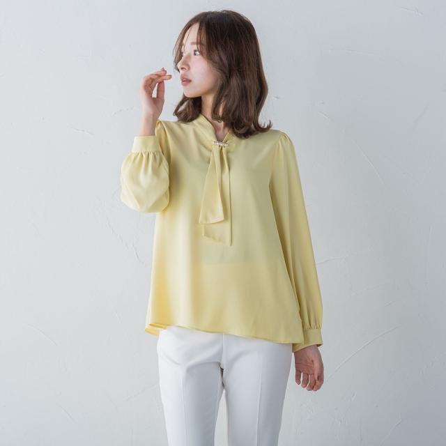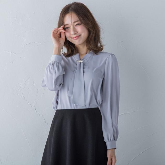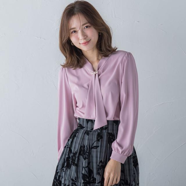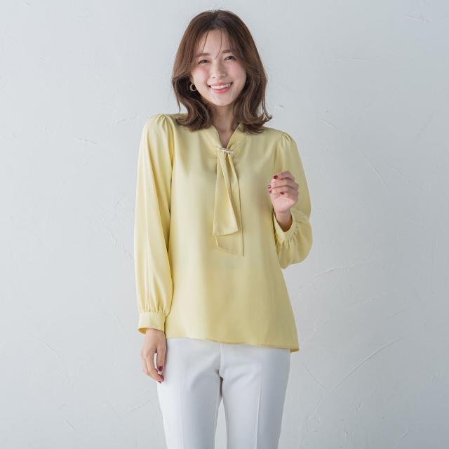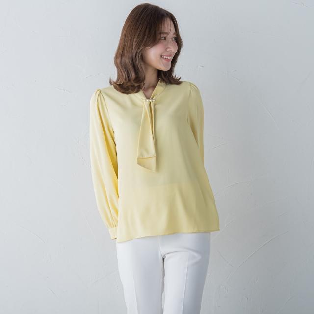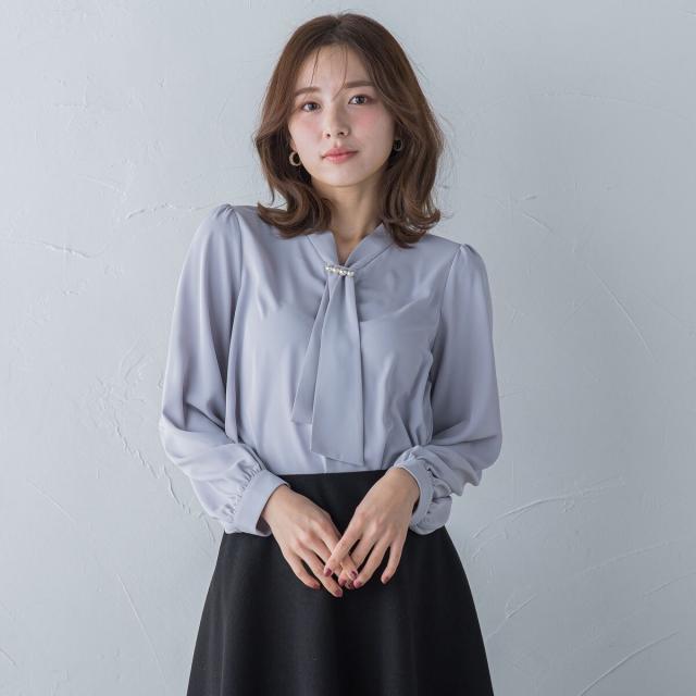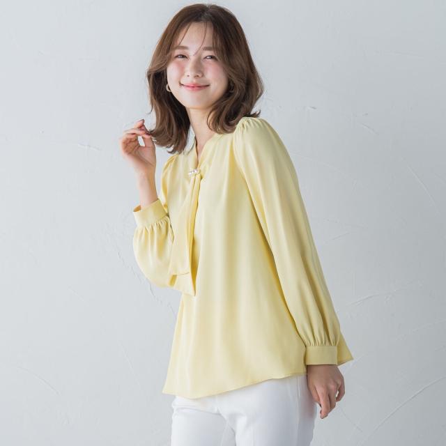 パール付きボウタイブラウス≪洗濯機で洗える≫