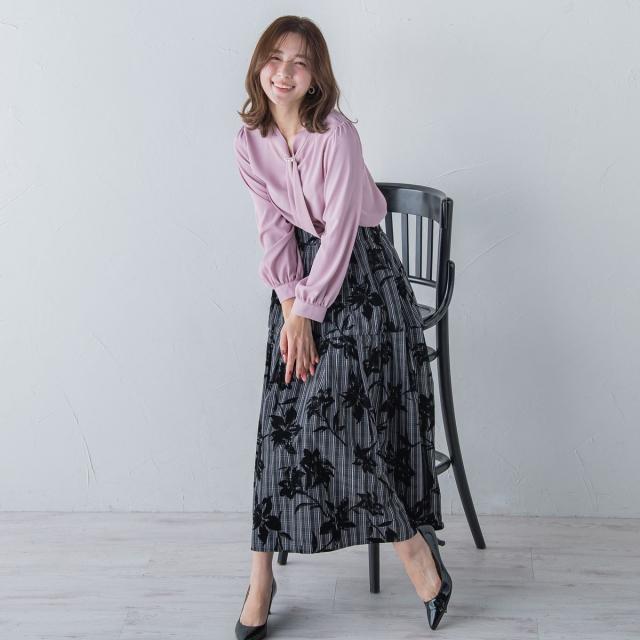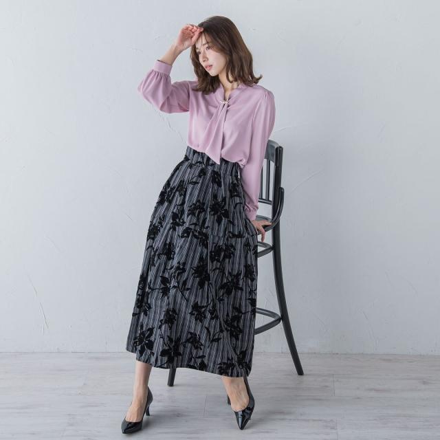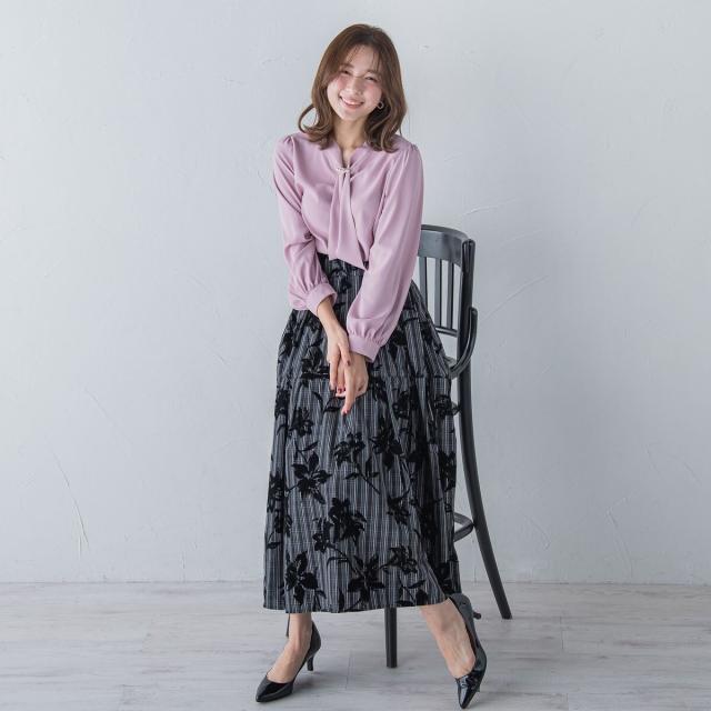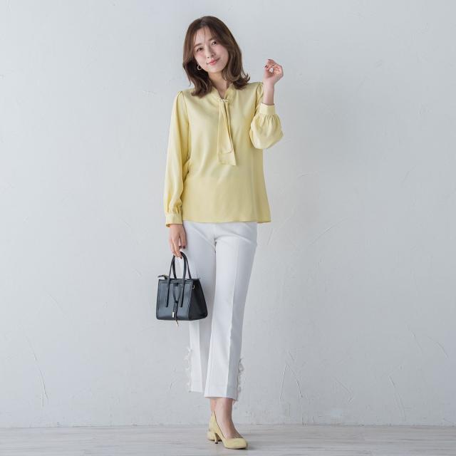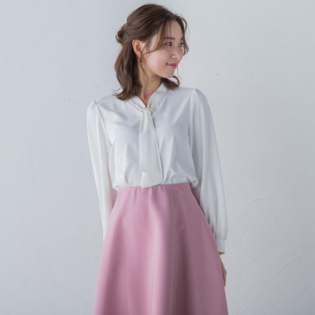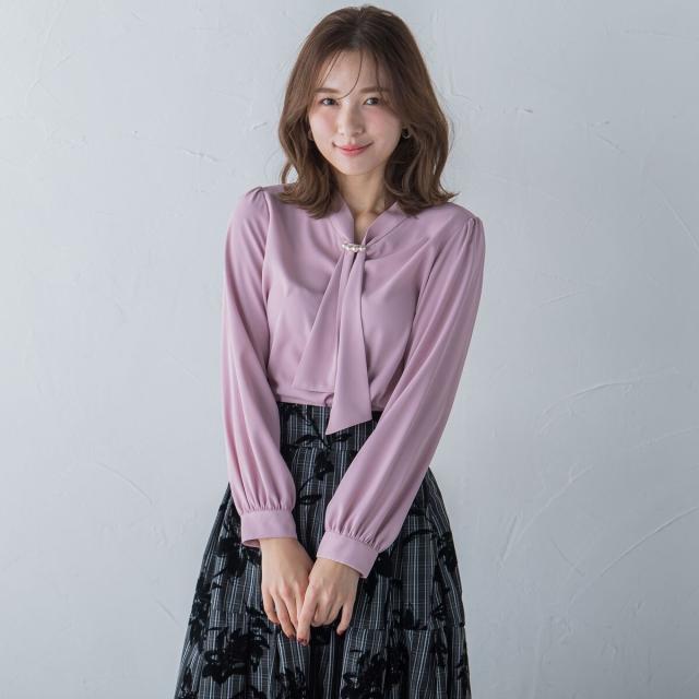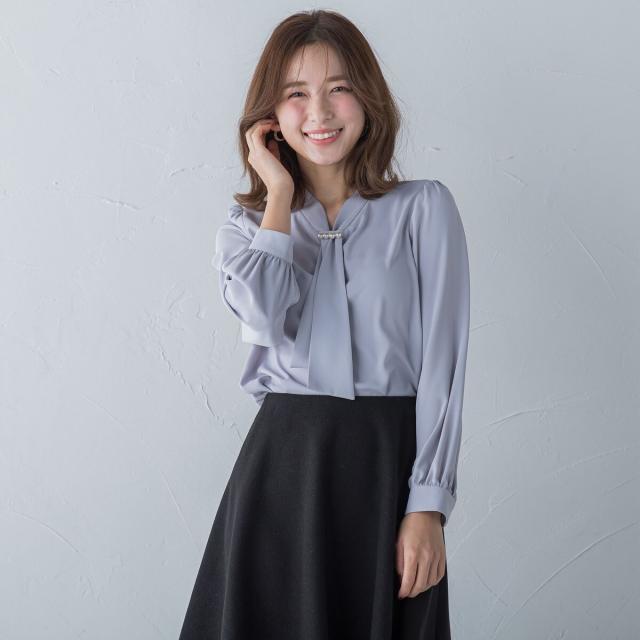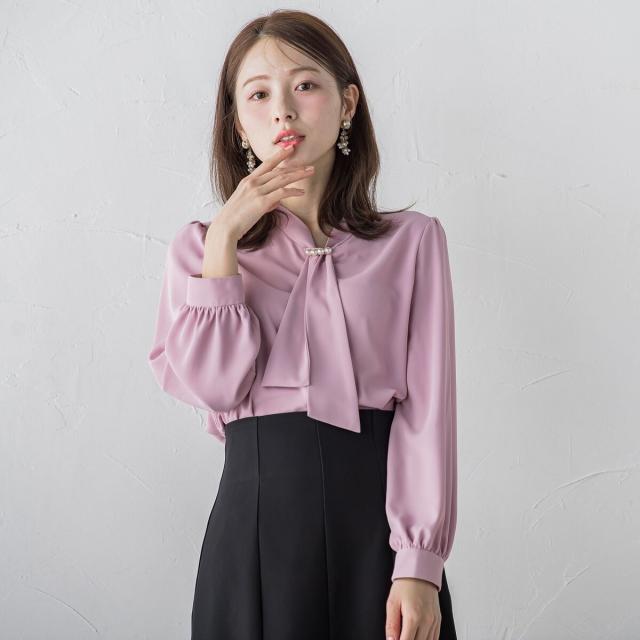 パール付きボウタイブラウス≪洗濯機で洗える≫