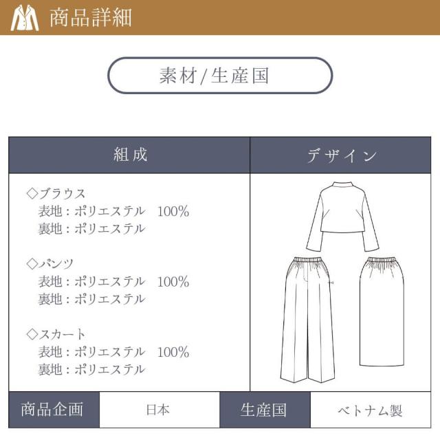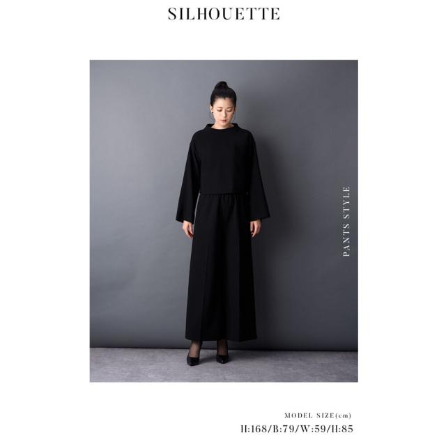 ブラックフォーマル レディース ロング スカート パンツ ブラウス 3点セット フォーマレスブラック