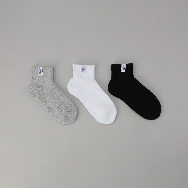 地厚でソフトな生地を用いたショート丈ソックス3足組。ベーシックな無地デザインに、足首部分のリブとネームタグでさりげないアクセントを添えています。肌触りの良さとクッショニングもポイントで、柔らかく包み込まれるような履き心地。タウンユースはもちろん、スポーツやアウトドアまで幅広いシーンにオススメです。