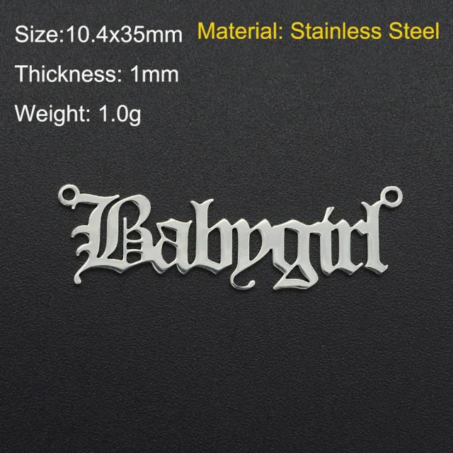 ゴシックアルファベットメッセージコネクトステンレスパーツ(Babygirl) 1個販売 ジョイントパーツ コネクター 繋ぐ つなぐ 2穴 穴あき つなげる メンズ レディース ステンレス ネックレス ブレスレット アンクレット クサリ チェーン 鎖 文字 手紙 レター 金具 部品 英語