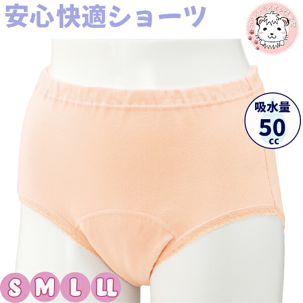 無地 快適安心ショーツ 失禁 綿混 吸水量50cc S/M/L/LL | 婦人用 失禁ショーツ 吸水ショーツ安心 快適ショーツ ショーツ 介護用 入院 病院 介護施設