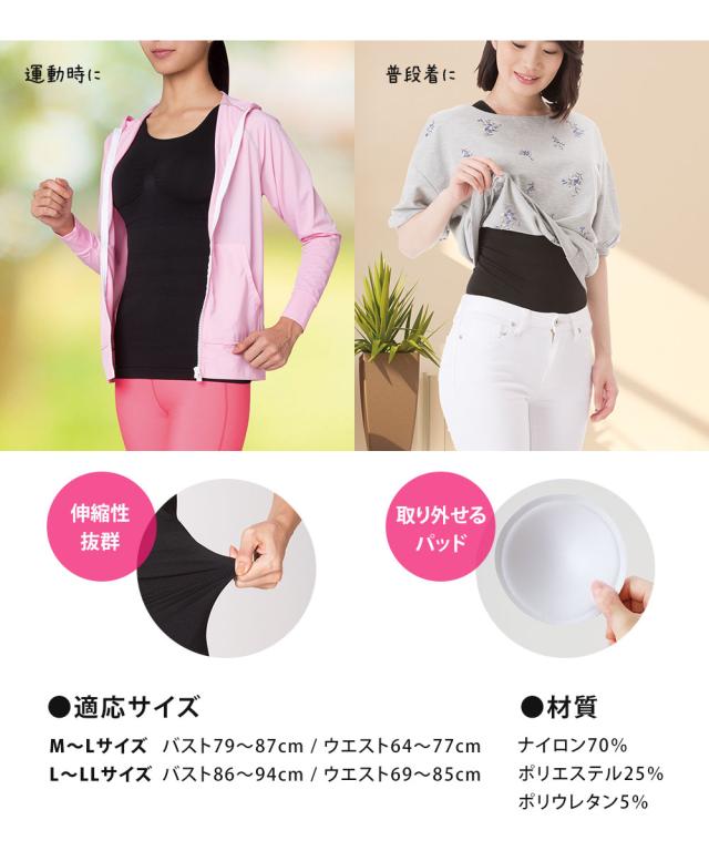 適応サイズ/M〜L:バスト79〜94cm・ウエスト64〜77cm、L〜LL:バスト86〜101cm・ウエスト69〜85cm