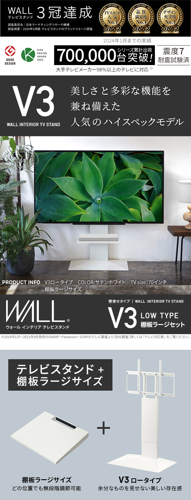 棚付き テレビスタンド ウォール インテリア V3 ロータイプ 棚板ラージセット 【送料無料】 壁寄せ 壁掛け テレビ台 テレビボード 薄型 スリム 省スペース おしゃれ WALL 人気 75インチ 80インチ 大型 おすすめ ウッド