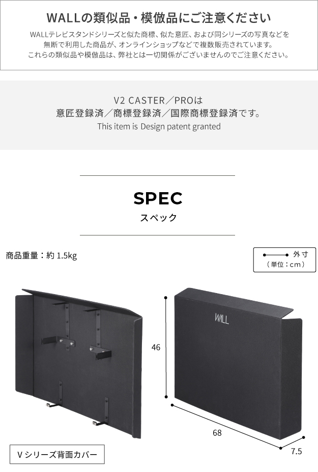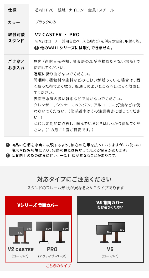 後ろからも美しく WALL インテリア 壁寄せ テレビスタンド Vシリーズ専用 背面カバー 【送料無料】
