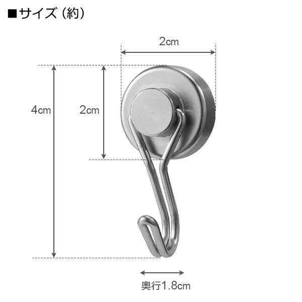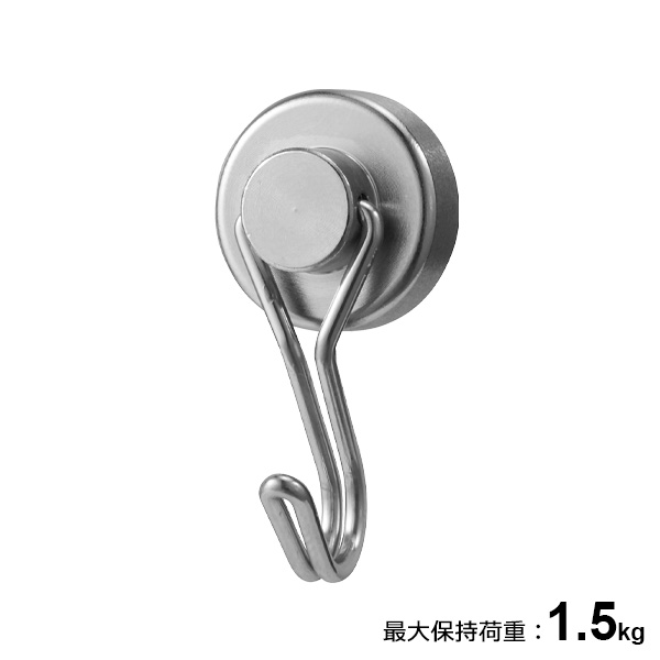 強力 マグネット ハングフック メタル (小) 2個入 H00422 | フック マグネット ネオジム 磁石 強力 コンパクト 冷蔵庫 洗濯機 キッチン 小物 小物 浮かせる 収納 吊り下げ 耐荷重1.5kg ステンレス