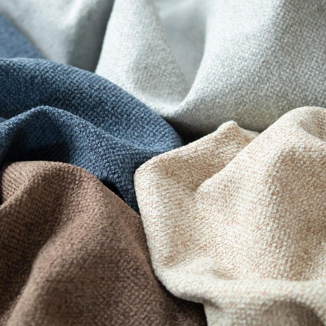 カバーはソファの生地のようなしっかりとしたファブリック生地です。心地の良いしなやかな肌触りで、季節問わずオールシーズン快適にお使いいただけます。また空間に馴染むよう、チャックはそれぞれの生地の色に合わせてつくられており、細部にまでこだわったデザインです。