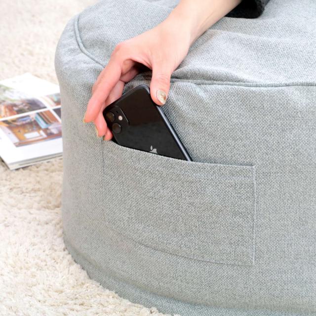 正面のポケットにスマホやリモコン、ハンドクリームやリップなどの小物を入れておけば、ほしい時にすぐに使えて便利です。