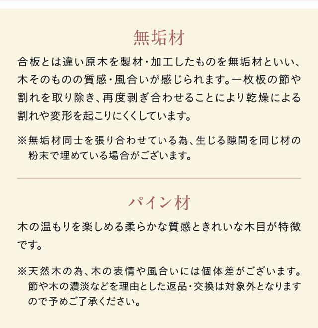 ※ こちらの商品は、天然木を使用しております。その為、木の表情や風合いには個体差がございます。節など木の風合いを理由とした返品・交換は対象外となります。