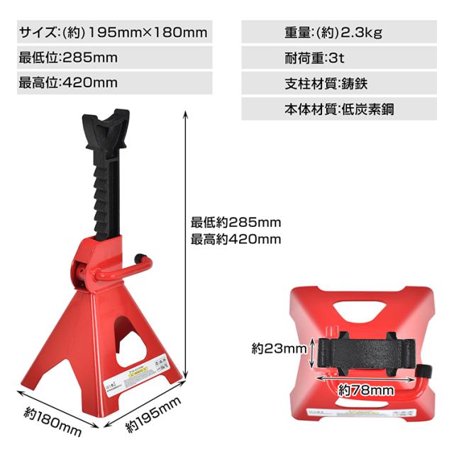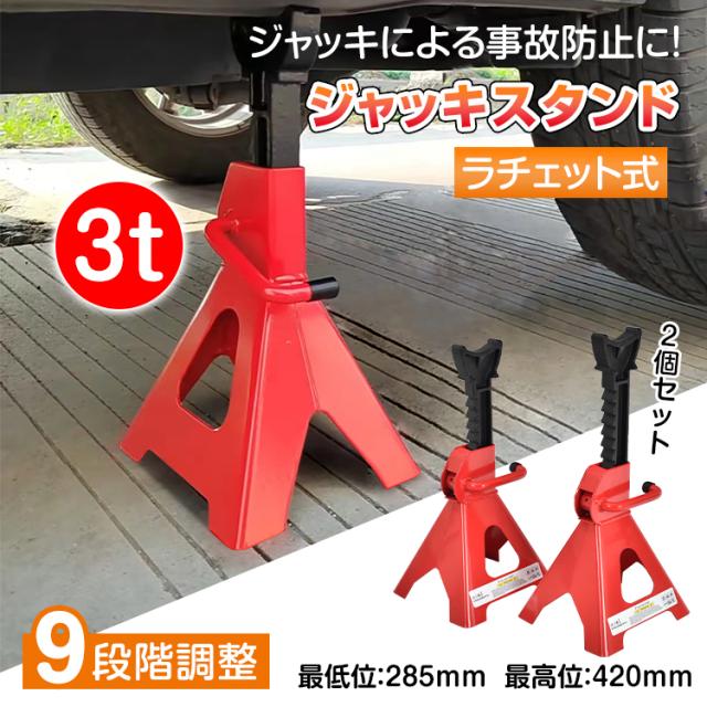 ジャッキスタンド 3t 2台セット ラチェット式 低床 ジャッキアップ ジャッキダウン リジッドラック コンパクト 持ち運び 耐久性 タイヤ交換 ee367