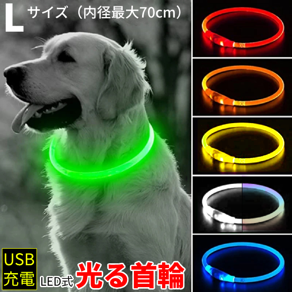 L 70cm 犬 猫 ペット 首輪 光る LEDライト 夜 散歩 長さ調整可 常時点灯 点滅 蛍光 USB充電 ペット 小型犬 中型犬 大型犬 安全 事故防止 夜光 発光 生活防水 キラキラライト おしゃれ