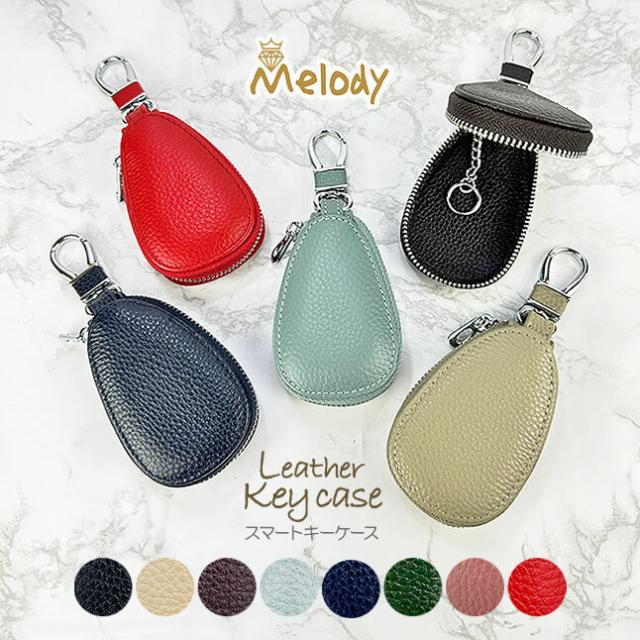 キーケース 革 12099 Melody メロディ スマートキーケース レザーキーケース 通勤 旅行 女性 レディース 男性 メンズ 男女兼用 ユニセックス 社会人 シンプル 本革 牛革 ブラック グレー ダークブラウン アイスブルー ネイビー モスグリーン ボルドー レッド
