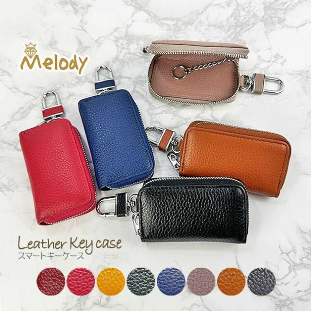 キーケース 革 12705 Melody メロディ スマートキーケース レザーキーケース 家用 車用 通勤 旅行 女性 レディース 男性 メンズ 男女兼用 ユニセックス 社会人 シンプル 本革 牛革 ブラック キャメル ベージュ ブルー モスグリーン イエロー ピンク ワインレッド