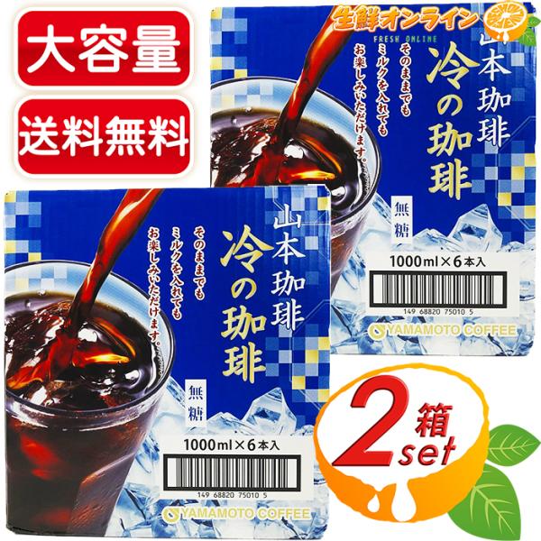 【山本珈琲】冷の珈琲 (ひやしのコーヒー) 無糖 特大容量 計12本入 (1000ml×6本入)×2セット アイスコーヒー 珈琲 コーヒー リキッドコーヒー アイス珈琲 山本コーヒー ヤマモトコーヒー【コストコ】