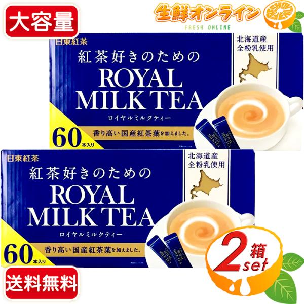 ≪60本入×2箱セット≫【日東紅茶】ロイヤルミルクティー 粉末ドリンク スティックタイプ 大容量 ◇お湯にサッと溶かすだけ◇ ◎北海道産全粉乳使用◎ インスタント紅茶 粉ミルクティー 国産紅茶葉【コストコ】