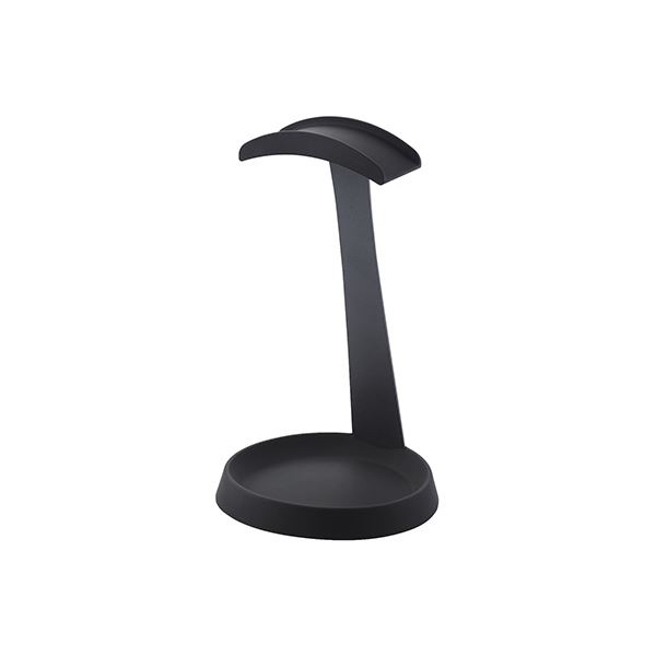 ケーブルや小物を収納できる台座部と、柔らかいシリコン製でヘッドホンバンド部の変形を防ぐフック部を持つ、オーソドックスな形状のヘッドホン用スタンドです。