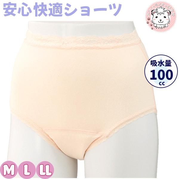 安心 快適ショーツ 無地 失禁ショーツ 吸水ショーツ 婦人用 快適安心ショーツ 抗菌防臭 消臭 吸水量100cc M/L/LL おためし