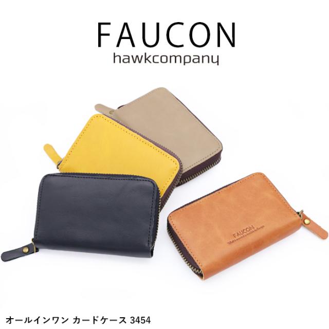 財布 小さい財布 カードケース HawkCompany ホークカンパニー h.k.c. FAUCON フォコン オールインワン 3454 コンパクト 財布 本革 ファスナー メンズ 男性 レディース 女性 小銭入れ ミニウォレット ブラック ブラウン グレー イエロー