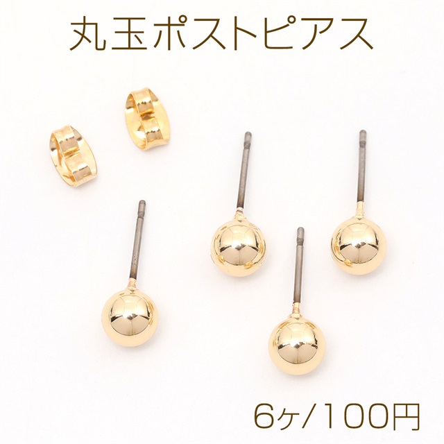 丸玉ポストピアス チタン製 丸玉付きポストピアス チタン製針 防アレルギー金具ピアス ゴールド 6mm(6ヶ)