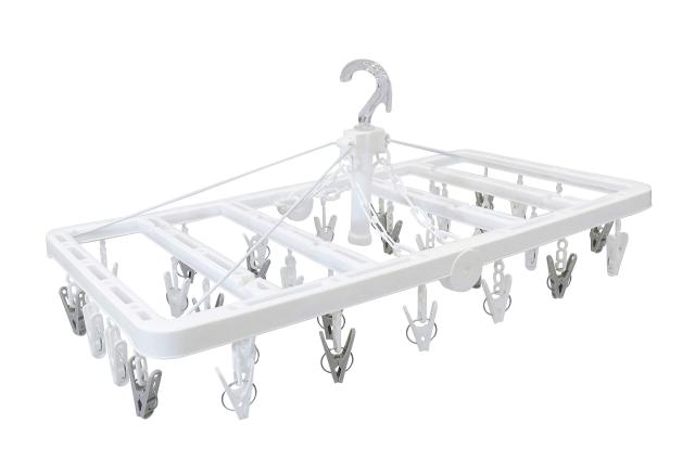 東和産業 洗濯物ハンガー ホワイト 約28×65.5×34cm UD浴室干し折りたたみ角ハンガー カモイにも掛けられる ピンチ32個付