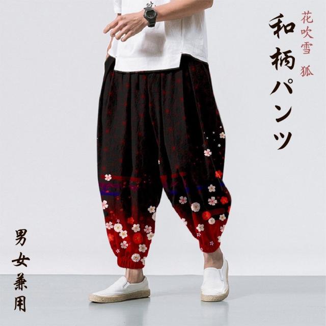 パンツ 和柄 花吹雪 桜 狐 和服 和装 サクラ ダンス衣装 韓国ファッション メンズ レディース ステージ衣装 ヒップホップ ストリート 原宿系 シンプル オルチャン スポーティー トレーニング モード系 韓流 KーPOP コリアン