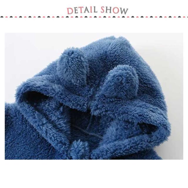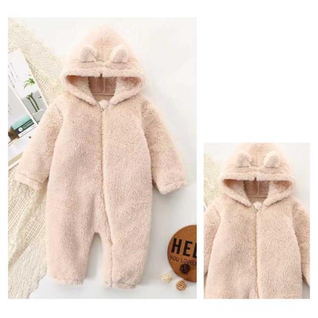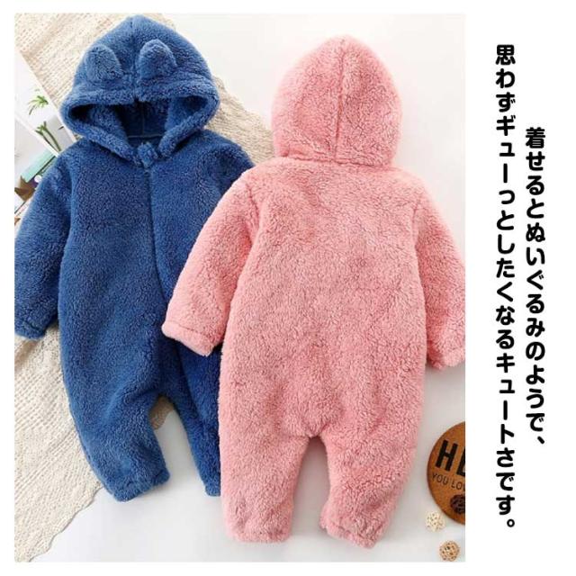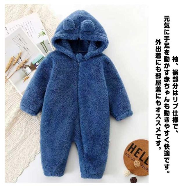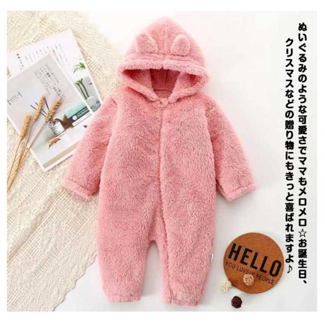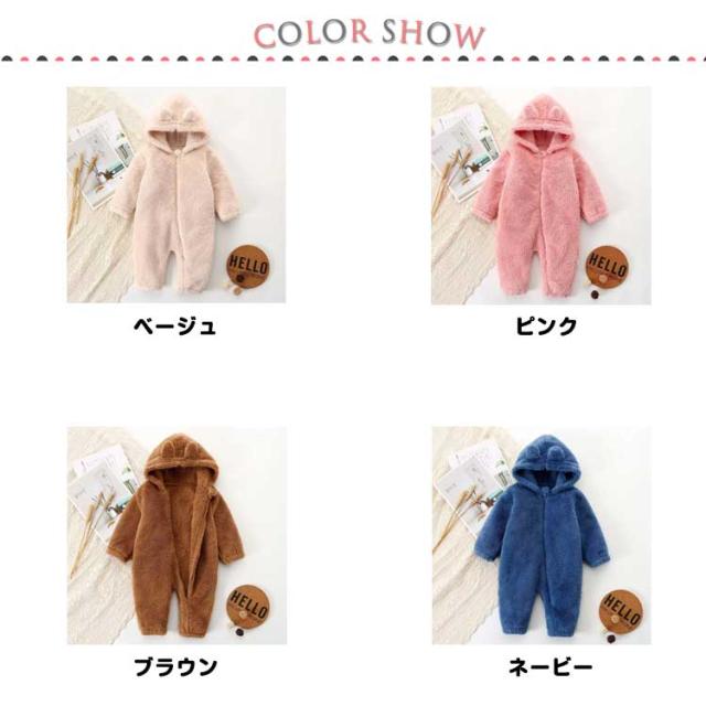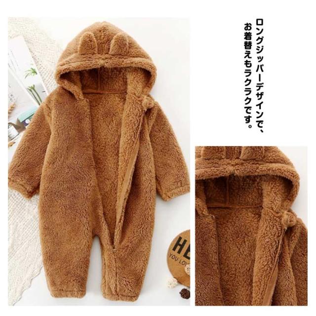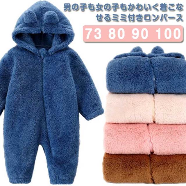 ロンパース ファスナー 着ぐるみ ベビー もこもこ フリースロンパース カバーオール 防寒 出産祝い 前開き 耳付き 可愛い 部屋着 ルームウエア 73cm 80cm 90cm 100cm 春 秋 冬