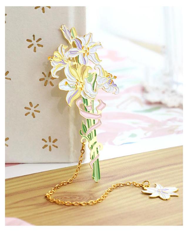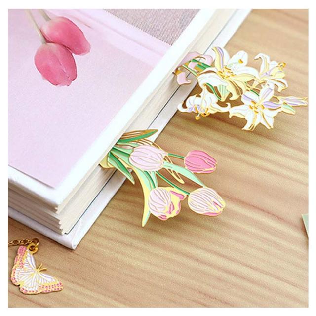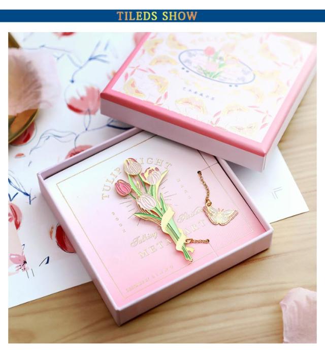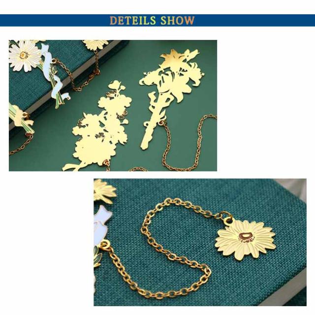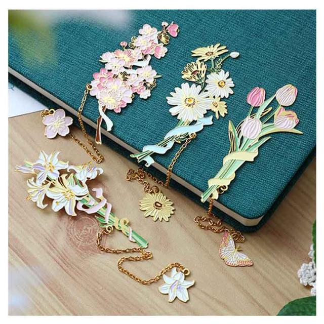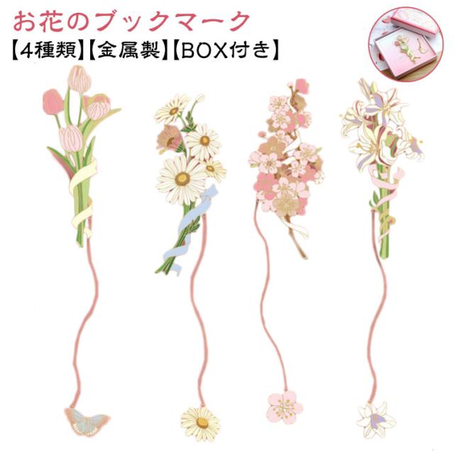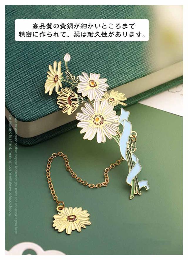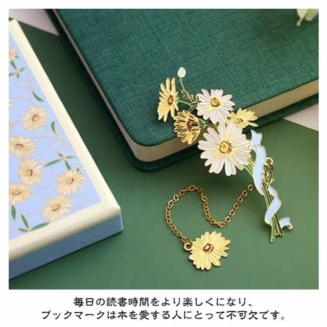 ブックマーク お花 ブックマーカー しおり 女の子 チューリップ 白百合 雛菊 桜 おしゃれ かわいい プレゼント BOX付き ギフト 金属 ボタニカル ゴールド 金縁 メタル 読書 チェーン ゆらゆら 揺れる 文房具 事務用品 学生 作家