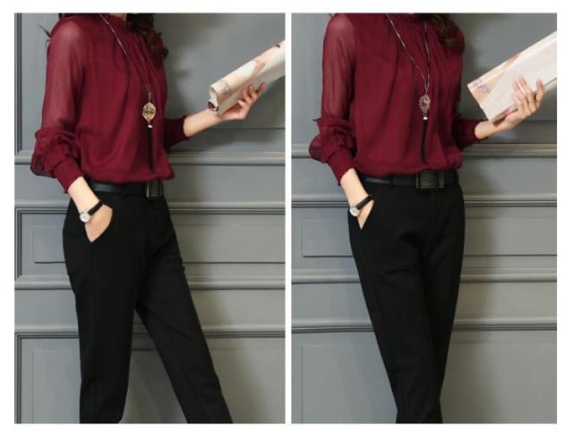 | 上品でスタイリッシュな印象を与える、シースルーシフォンシャツブラウスです。 ちょうど良い透け感のシースルー袖が、清涼感のある きれいめ女性を感じさせてくれます。 オフィス、通勤やお呼ばれ等のフォーマルな場面で着回しやすい1着です。 暑い時期には1枚で、寒い時期には上にニットやカーディガンを羽織ってコーデできる、オールシーズン使えるアイテムです。色違いで持っていても便利ですね♪ タイトスカートやデニム、スキニー、スラックス等のボトムスと相性抜群です。 | |