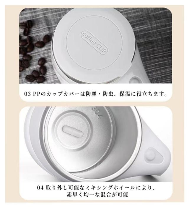 | 物理混合の原理を採用し、素早くかき混ぜながら温度を素早く放散するので、すぐにお飲みいただけます。 家庭やオフィスに適しています ワンクリックで撹拌を開始し、8秒で超強力かつ瞬時に撹拌します。 304 ステンレス鋼の内タンク、火傷防止、安全で耐久性があります。 コンパクトで持ち運びに便利、スペースを取りません IPX7防水、充電中は乾拭きするだけ 使用方法: 1. カップにコーヒーを注ぎます 2.カップに熱湯を注ぎます 3. コントロールボタンを押します 4.蓋を開けて飲めます | |