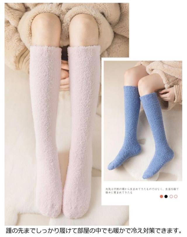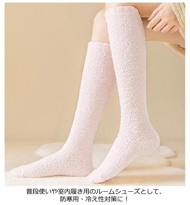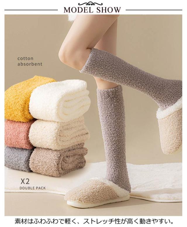 送料無料 2足セット ハイソックス 靴下 レディース もこもこ靴下 厚手 コーラルフリース ゆったり 可愛い 女性用 保温 防寒 学生 可愛い 室内用 家 睡眠 就寝 ふわふわ モコモコ 自宅 秋冬 おしゃれ シンプル 通学 仕事 通勤 無地