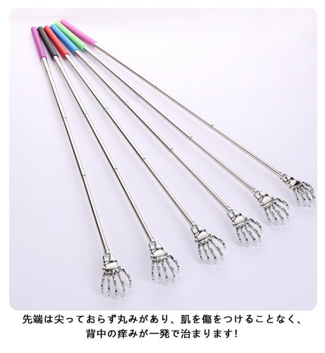 | 【伸縮式の孫の手】【肌を傷つけない】【コンパクトで便利】 痒いところに手が届く!いつでもどこでも持ち歩いて使える孫の手。 ステンレス製で汚れやサビに強く、非常に便利で長持ちします。 先端は尖っておらず丸みがあり、肌を傷をつけることなく、背中の痒みが一発で治まります! 伸縮自由なので、鞄の中に入れて、簡単に持ち運びます。 持ち手は合成ゴム滑り止め加工して持ちやすく仕上げました。 痒い時に手が届かない場所も、これがあれば楽々と解消。 | |
