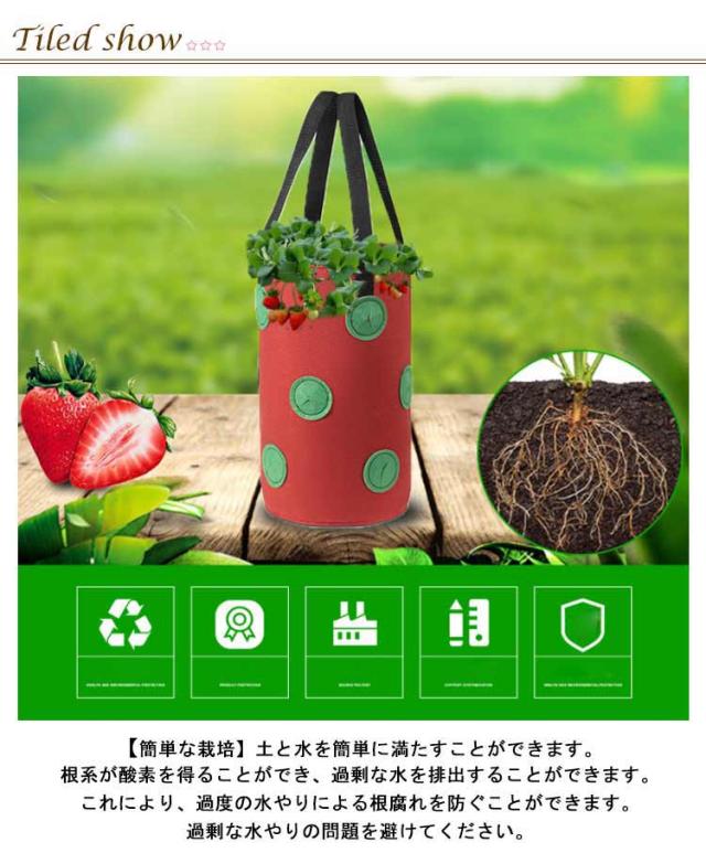 | 【簡単な栽培】土と水を簡単に満たすことができます。根系が酸素を得ることができ、過剰な水を排出することができます。これにより、過度の水やりによる根腐れを防ぐことができます。過剰な水やりの問題を避けてください。 【ぶら下げ式スペースを節約】逆さにデザインされたこの植え袋は、スペースを節約で、重力の原理を利用して根に水と養分を最大限に供給します。ぶら下がっている植栽バッグは、トマトや野菜の植え付けが簡単です。従来の植栽に比べ、汚れや虫が少なく、雑草も一切ありません! 【フェルトプランター】高品質のフェルト生地で作られた植木バッグは、2つのハンドル付きで、通気性、耐久性があり、折りたたみとお手入れも簡単です。 植栽バッグの素材は環境に優しく、再利用が可能です。 【幅広い用途】野菜を育てる場所がない場合は、この吊り下げ式の植栽バッグが最適です。ジャガイモ、トマト、ジューシーなミント、花、サトイモ、ニンジン、タマネギ、ピーナッツ、ユリ、バラ、ニンニク、イチゴ、ヒアシンス、スイカ、その他の野菜の栽培に使用できます。あらゆる種類の中庭、学校、庭、バルコニーに最適。 | |