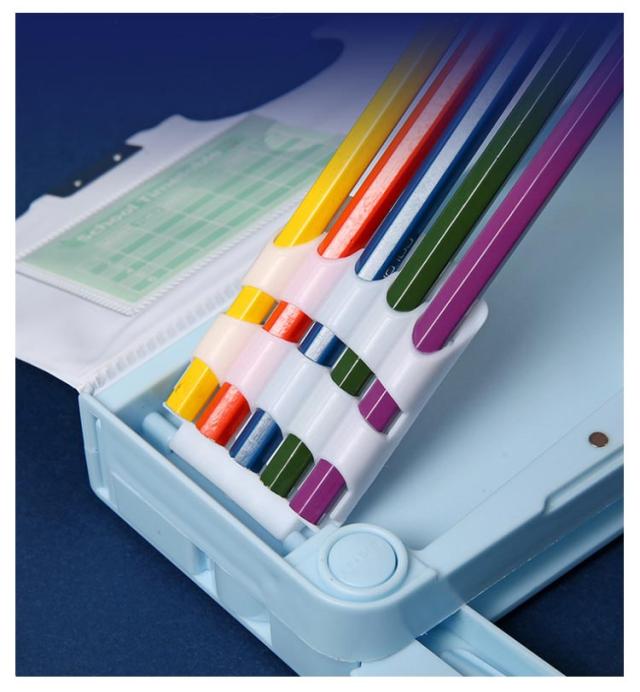 | 全22色!新色追加! 機能性はバッチリなので大活躍間違いなし。ペンケース。 時間割表+消しゴムケース+ハサミ付き+鉛筆削り+鉛筆ホルダー(鉛筆5本を収納)+テープ収納! 大容量でテーブルの上で散らばりそうな小物も、一気におしゃれに片付きます。 文房具が一目瞭然で、分かりやすく使いやすい! | |