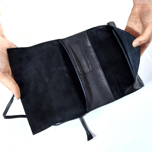 柔らかく肌触りの良い牛革の日本製ローランドロールアップポーチです。