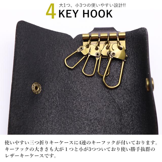 HawkCompany ホークカンパニー レザーキーケース キーリング 三つ折り 4連 メンズ レディース ユニセックス ブラック ブラウン グリーン オレンジ ゴールド レザー 革 本革 プレゼント ギフト 男性 女性 シンプル カジュアル おしゃれ 小物 ブランド 大人 贈り物 お揃い