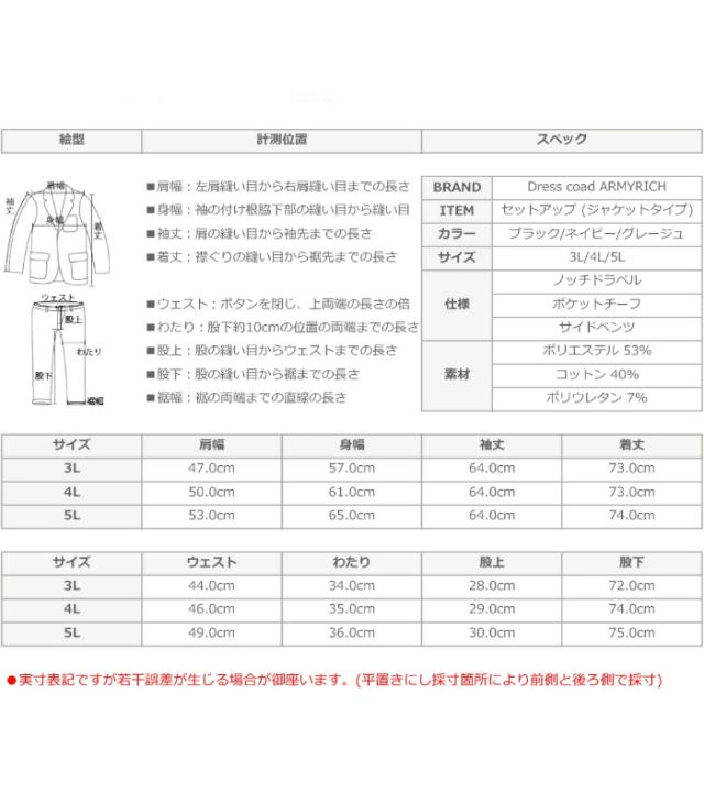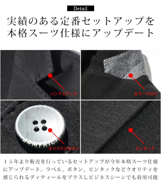 ARMYRICH アーミーリッチ 大きいサイズ メンズ セットアップ 上下セット カジュアルスーツ きれいめ 大人 シンプル テーラード ストレッチ