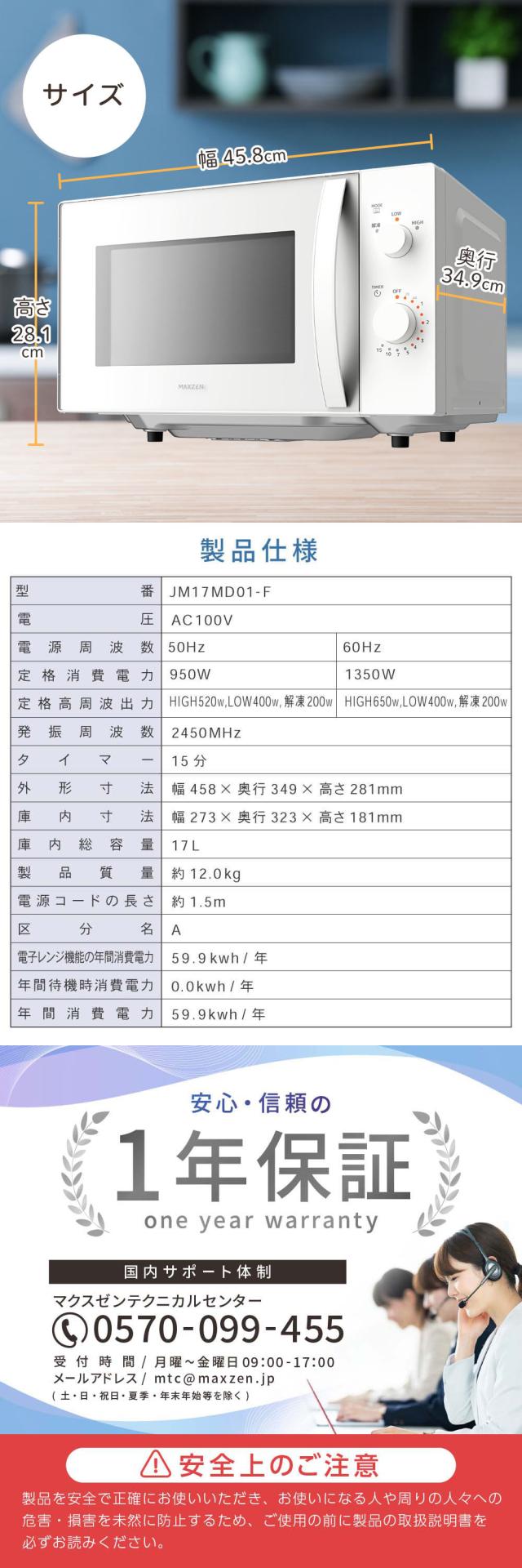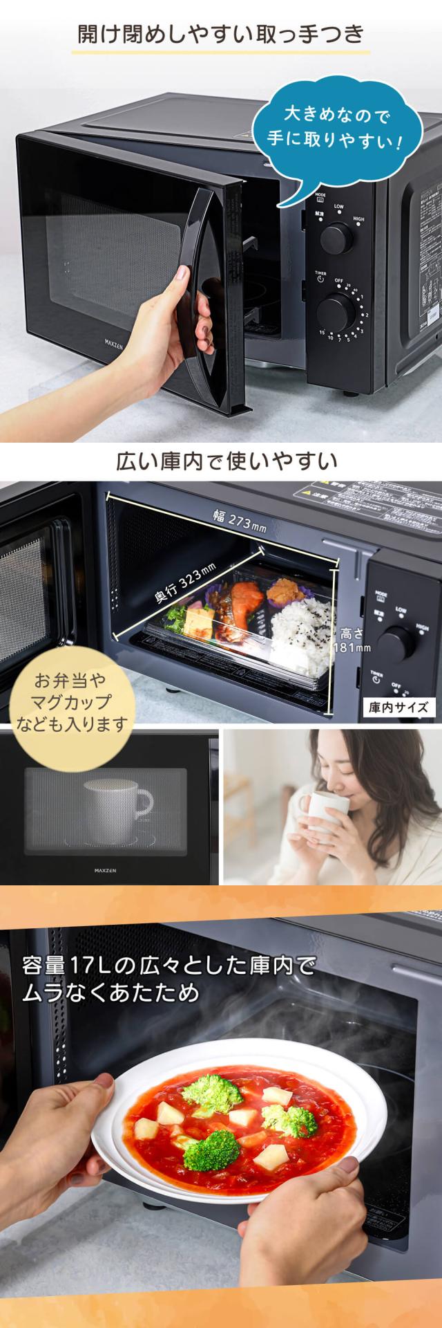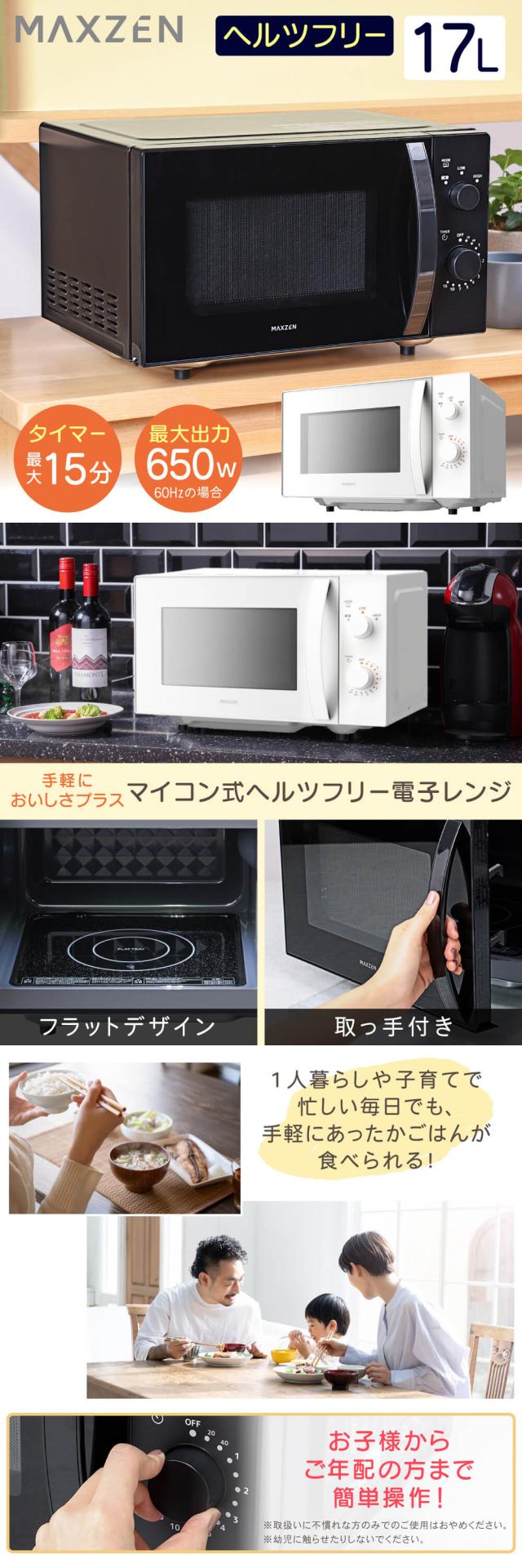 電子レンジ 17L フラット式 レンジ ヘルツフリー 小型 一人暮らし 解凍 あたため シンプル ブラック 黒 簡単 調理器具 簡単操作 JM17MD01BK-F マクスゼン