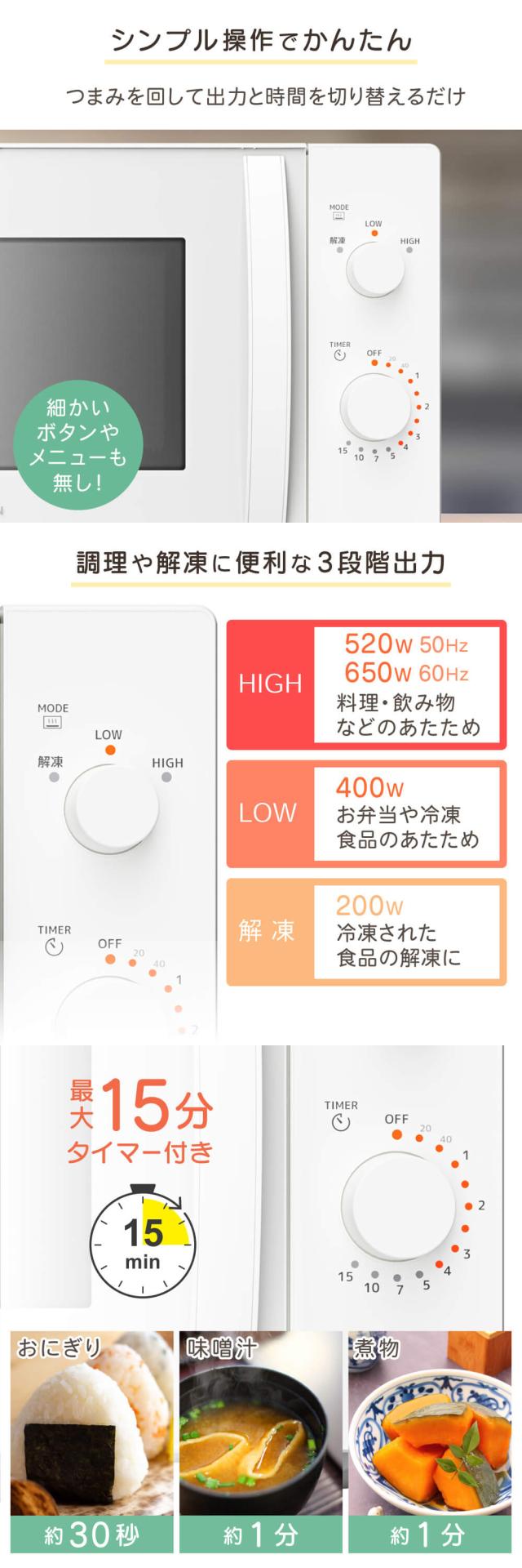 ・60Hz:HIGH650W、LOW400W、解凍200W