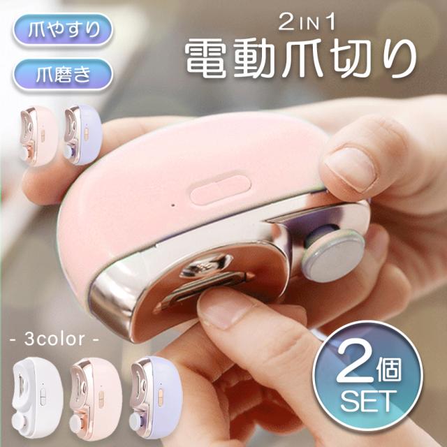 電動爪切り 爪切り 電動つめ削り 2個セット 爪磨き 足の爪 つめきり 角質ケア ネイルケア 爪やすり ライト付き 巻き爪 厚い爪 爪ケア USB充電式 ワイヤレス 2段階スピード 爪研ぎ 足爪用 赤ちゃん 介護用 高齢者 足用 子供 静音
