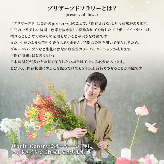 プリザーブドフラワーはハンドメイドで行っているので管理も行き届いております。