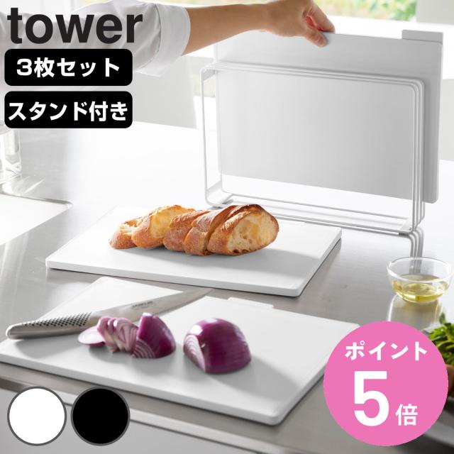 tower 山崎実業 食洗機対応 抗菌まな板3枚セット タワー ( タワーシリーズ まな板 まないた マナイタ 俎板 抗菌 抗菌まな板 3枚セット セット スタンドセット スタンド付き 滑り止め付き tower 山崎実業 キッチン)