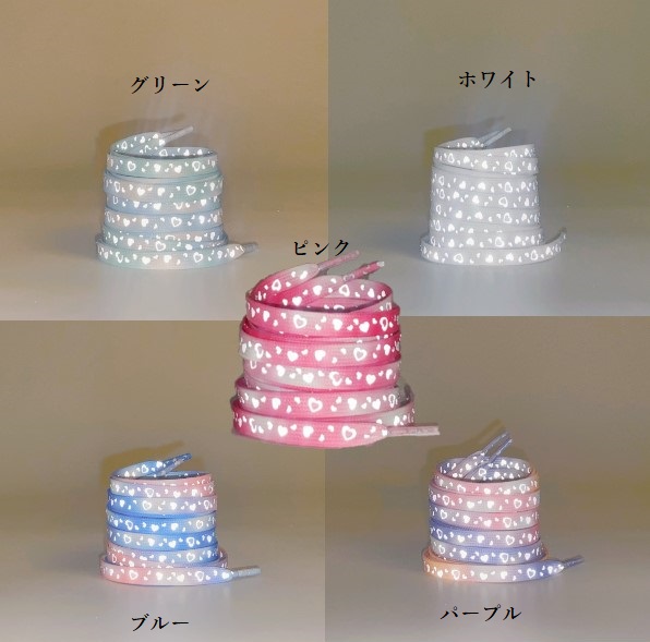 反射 リフレクター ハート グラデーション 靴ひも おしゃれ スニーカー 紐 くつひも 靴紐 かわいい カラフル 発光 光る 子供 大人 ハイカットスニーカー