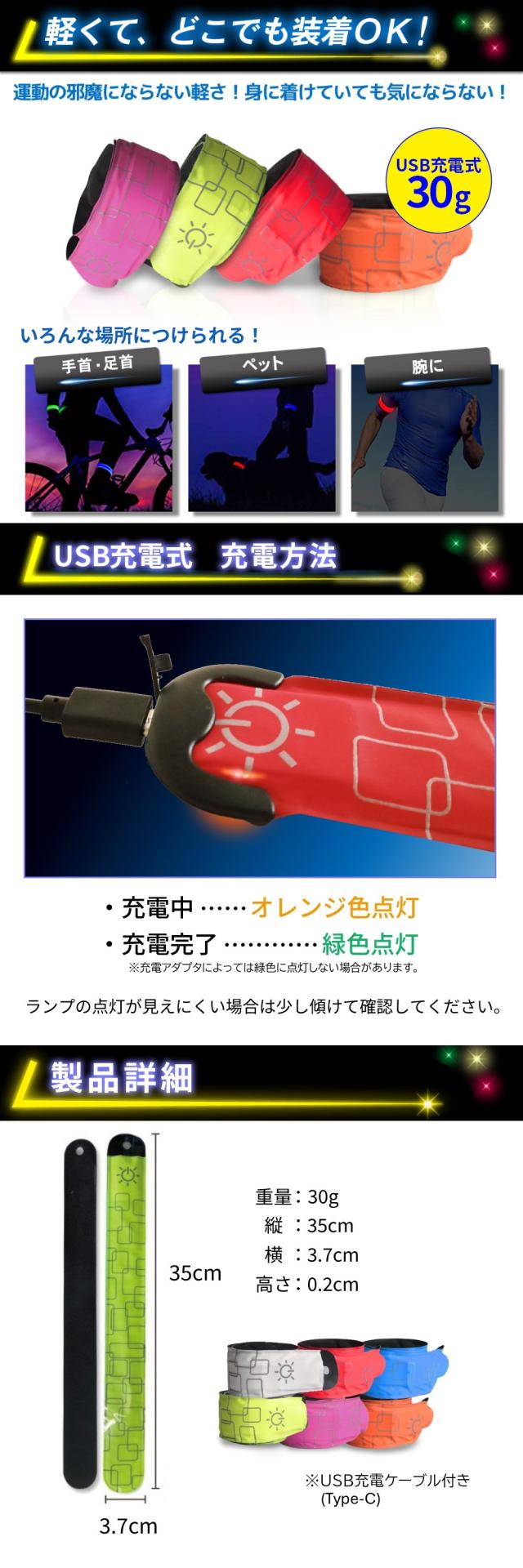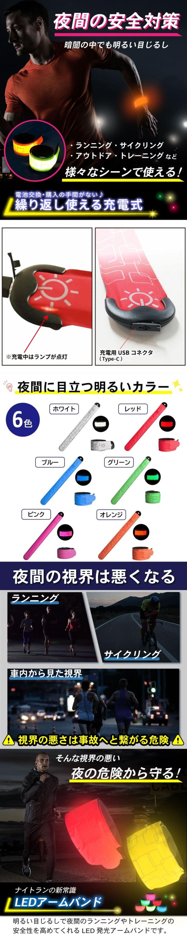 ランニング ライト LED マーカー USB充電 発光 アーム バンド リスト リフレクター 手首 腕 足首 自転車 明るい 点滅 軽量 安全グッズ セーフティ 防犯 スポーツ マラソン ウォーキング ナイトラン アウトドア 夜間 夜道 通勤 通学 ペット 散歩 事故防止 リノウル