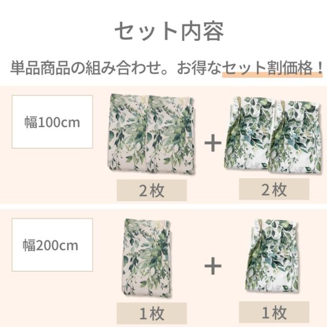 幅200cm:カーテン1枚+レースカーテン1枚