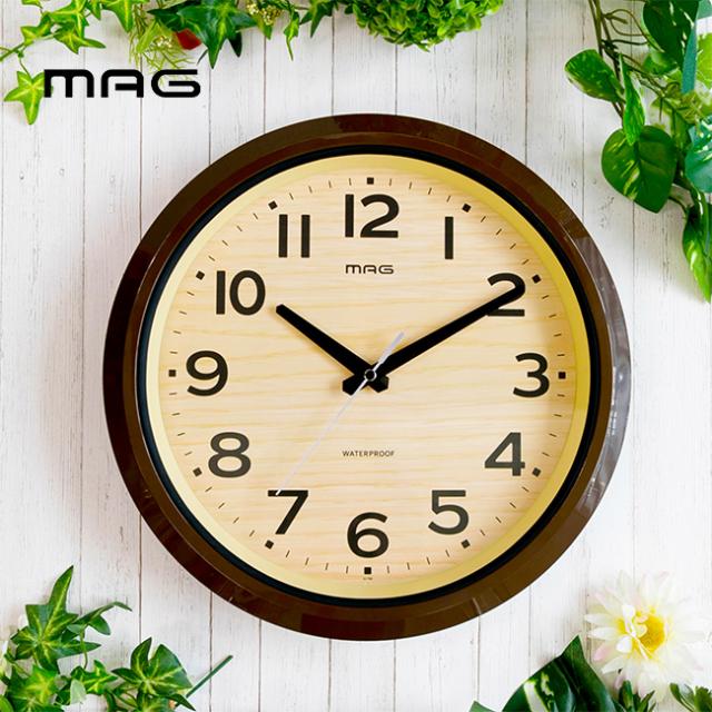 MAG マグ 防塵防水掛時計 モク W-796 BR-Z (掛け時計 アナログ 壁掛時計 防水 銭湯 温泉 脱衣所 壁掛け時計 連続秒針 スイープ秒針 カチカチ音 コチコチ音がしない 秒針 静か 寝室 ノア精密 木目調 時計 おしゃれ)