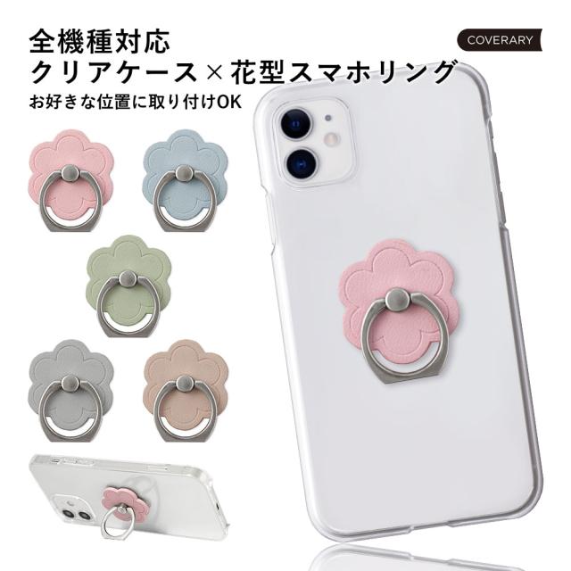 なめらかでマットな質感のくすみパステルのスマホリング×クリアケース