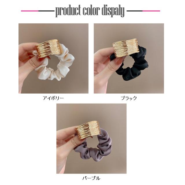 【キーワード】シュシュ ヘアアクセサリー ヘアゴム メタル プレート こなれ感 モード 上品 華やか おしゃれ 大人 まとめ髪 簡単 アレンジ 時短 韓国 ヘアアクセサリー シュシュ シルク ヘアゴム おしゃれ シュシュ 髪ゴム シルクヘアゴム ヘアアクセ ゴム 髪留めゴム